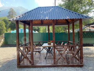 Имеется терраса, зона барбекю, мангальная зона, садж, лобное место, беседка, качели и автопарковка. Очень красивый вид на горы. Рядом есть русская баня.