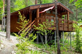 Мы расположены в 2х км не доезжая до поселка Архыз, на большой территории в лесу. Между домами комфортное расстояние, со всех террас красивый вид.