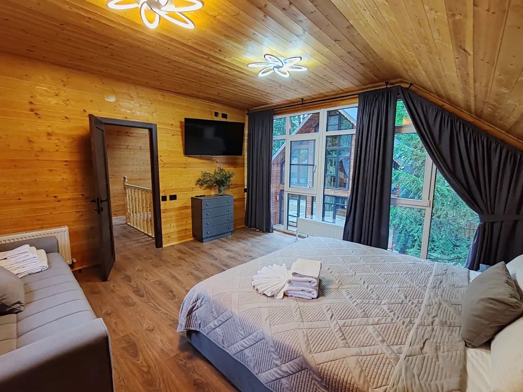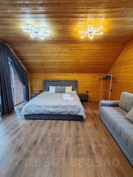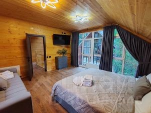 Третий этаж-мансардная спальня с двуспальной кроватью и раскладным диваном.