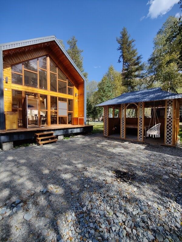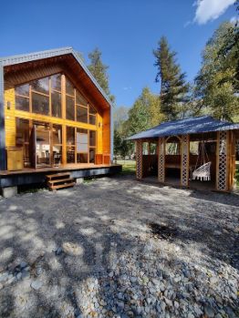 Дом состоит из трех спален, кухни-гостинной и ванной комнаты, подойдет для размещения до 10 гостей.