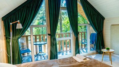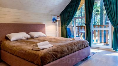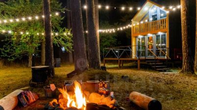 На благоустроенной территории расположился комфортабельный коттедж на шесть человек, оснащен двумя спальнями, ванной комнатой, кухней и гостиной. С просторной террасы открывается прекрасный вид на вековые сосны.