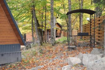 Возле каждого домика находится оборудованная мангальная зона, имеются наборы шампуров, в продаже есть уголь, дрова.