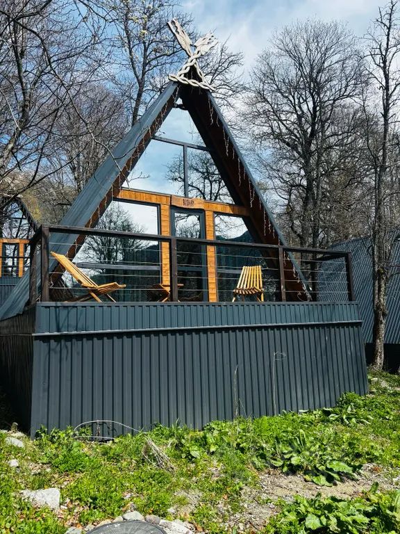 Одновременно в а-фрейме могут комфортно проживать до четырёх человек.