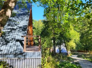 На территории расположены 6 уютных деревянных домиков с эксклюзивным эко-интерьером общей площадью 47 м2, в которых есть всё для комфортного проживания.
