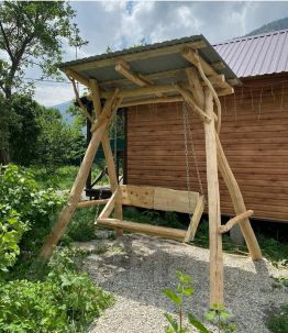 На территории имеется навес, мангальная зона, качели, бассейн с золотой форелью.