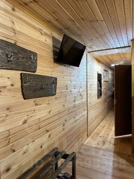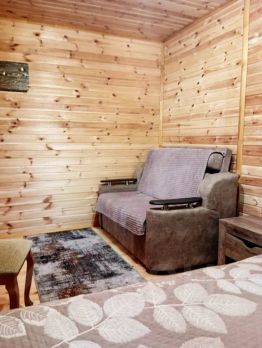 Есть большой зал для компании, где имеется дровяная печь, стол, скамейки, диванчик и все для комфортного отдыха!
