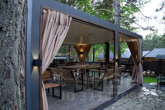 Мангальная зона на свежем воздухе, где можно пожарить шашлыки и провести время с друзьями.