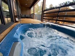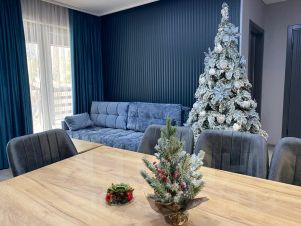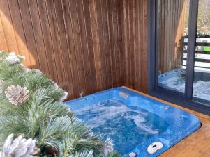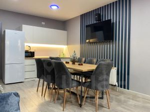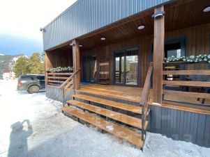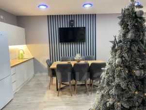 В доме расположены 3 спальные изолированные комнаты с двуспальными кроватями (в одной из спален также установлена софа для 1 человека), 2 санузла, большая кухня-гостиная с раскладным диваном-кроватью. На кухне имеется все необходимое для проживания 9 человек, большой стол, телевизор со смарттв и яндекс станцией макс, также в доме имеется своя котельная-сушильная комната. Дом имеет свою собственную террасу с встроенным спа-бассейном(джакузи). На территории находится собственная беседка с мангальной зоной.