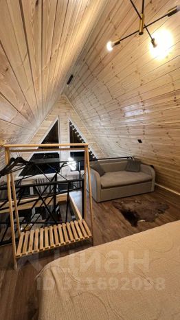 В дoмикe кухня-гостиная, закрытая спальня, спальня на втором этаже, санузел.
