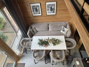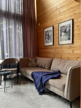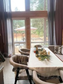 Двухэтажный Барн Хаус среди вековых сосен на небольшой уютной территории. В доме есть все для комфортного проживания. Большая спальня на втором этаже с двуспальной кроватью и диванчиком.