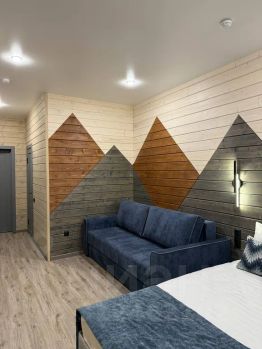 1 комната: шкаф, двуспальная кровать, раскладной диван, прикроватные тумбочки, tv, тёплый пол, санузел.