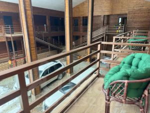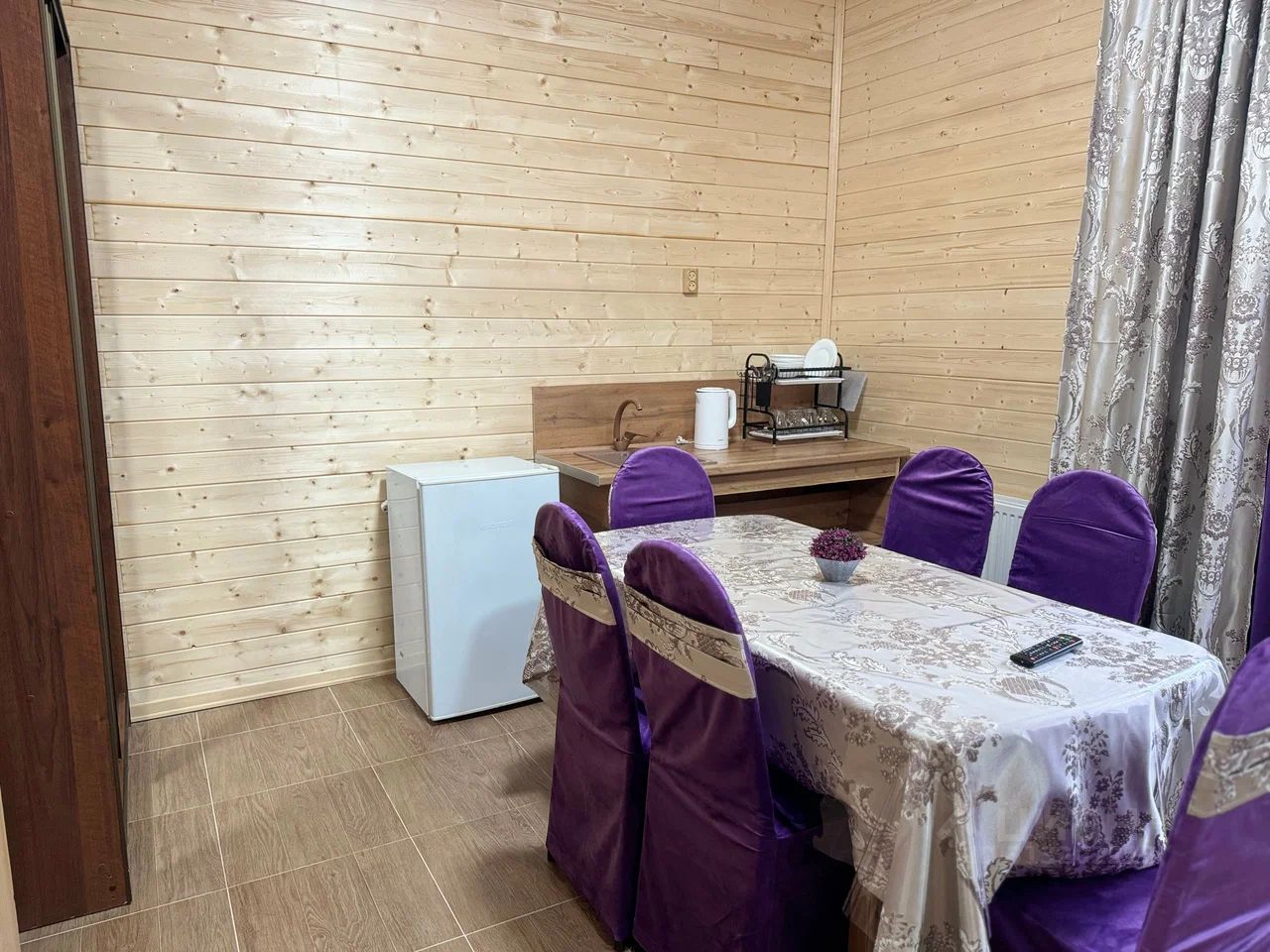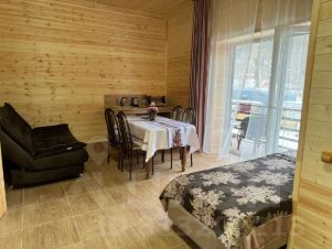 Для удобства гостей комфортные комнаты, оснащенные всеми необходимыми удобствами для комфортного проживания. На выбор предоставлены комнаты в главном 2-этажном здании, а также отдельные домики. Все комнаты и домики выполнены из экологически чистого дерева, что создает особую атмосферу уюта и тепла. Также есть общая кухня с холодильниками, печкой и всей посудой. На территории гостевого дома есть беседки и мангалы.