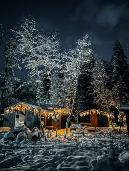 Дом оснащен всем необходимым для комфортного проживания: полностью оборудованная кухня с холодильником, микроволновой печью, посудой, сковородкой и кастрюлей, а также столовыми приборами.
