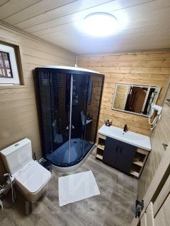 Дом для 4-6 гостей. Оснащен двумя спальнями, ванной комнатой, кухней и гостиной. С просторной террасы открывается прекрасный вид на вековые сосны. В доме есть все для комфорта гостей-удобные спальные места, постельное белье, набор полотенец, гигиенические средства, имеется фен, телевизор и Wi-Fi. Кухня полностью оснащена современной техникой и необходимой посудой, есть обеденный стол.
