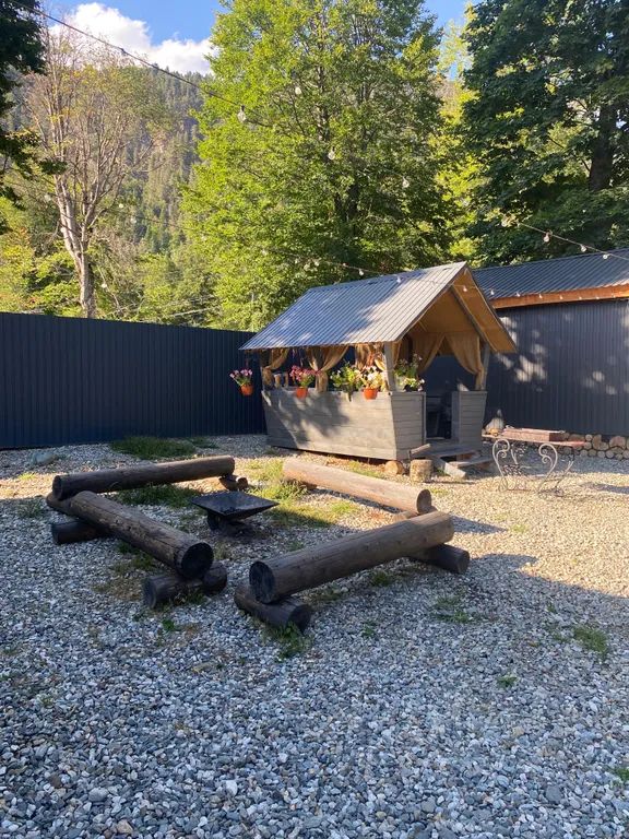 Беседка, мангальная и костровая зоны (шампура прилагаются), дрова и угли по запросу;