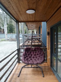В домике кухня-гостиная, отдельная спальня, санузел! Большие окна в гостиной и в спальне позволяют любоваться живописным видом!