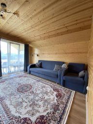 Улучшенный коттедж для четверых с двухспальной кроватью. Две комнаты и отдельная веранда. В коттедже есть телевизор с плоским экраном, фен, холодильник, обогреватель, ванная комната, банные полотенца, водонагреватель, раковина, туалетные средства, тапочки, терраса, зеркало, обеденный стол, стулья, шкаф для одежды, ковер, мангал, набор посуды, чайник, чайный набор, москитная сетка, отопление, питьевая вода.