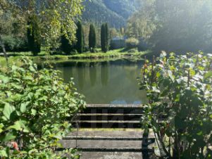 На участке два пруда и красивый сад, есть небольшая детская зона и беседка на воде.