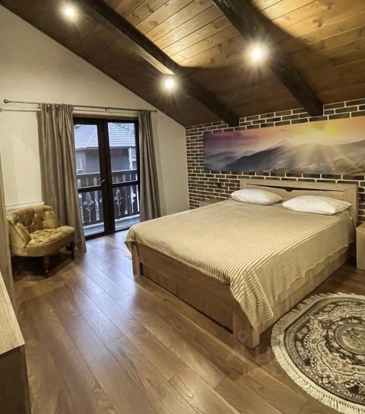 Дом располагает балконом с видом на горы, 3 спальнями, в каждой из которых есть телевизор, ванная комната. На первом этаже есть каминный зал, оборудованная кухня.