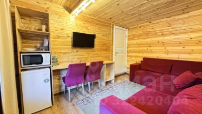 1 этаж состоит из двух 4-х местных номеров (одно изолированное 2-х спальное место, гостиная с раскладным диваном для 2-х) холодильник, телевизор, микроволновая печь, чайник, посуда а также отдельный туалет, умывальник с зеркалом и душ, имеется веранда.