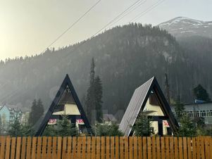 Уютный домик с мангалом возле канатной дороги и с видом на горы реку