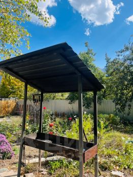придомовая территория обустроена для комфортного отдыха, просторный навес с большим столом, мангальная зона. Беседка.