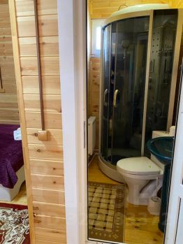 Домики полностью оборудованы всем необходимым для комфортного проживания ( всего 5 штук), в т. ч. санузлом с душевой кабиной, кухонной зоной и верандой. Отопление газовое - что является большим плюсом и вам будет тепло и комфортно!