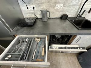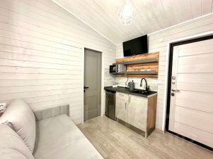 Оборудованная кухня (микроволновая печь, мойка, индукционная плита, большой и вместительный холодильник с морозильной камерой, чайник, посуда для приготовления и приема пищи)