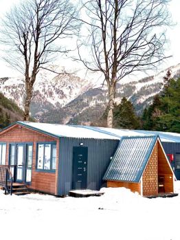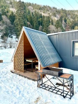 Трёхкомнатный дом с панорамными окнами в пол со шторами blackout и красивыми видами на горы