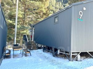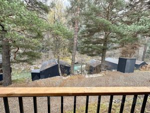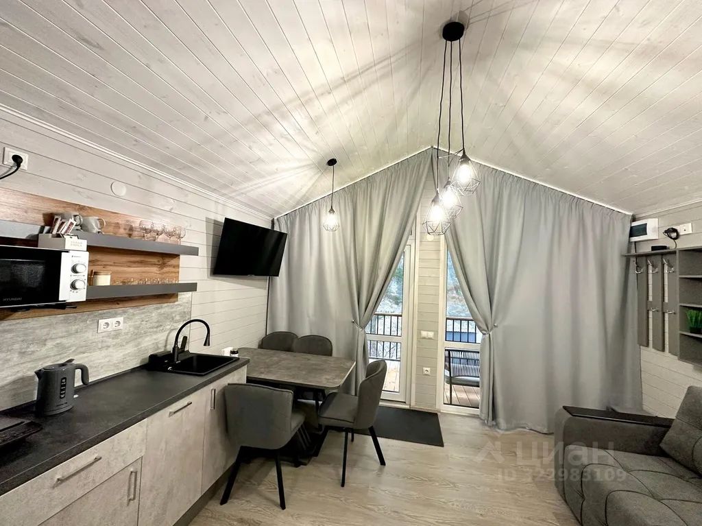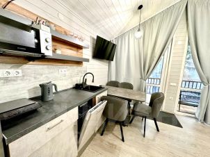 Современный двухкомнатный дом с панорамными окнами в пол со шторами blackout и шикарным видом на реку.