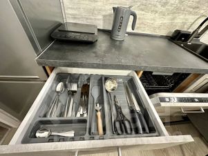 Оборудованная кухня (микроволновая печь, мойка, индукционная плита, большой и вместительный холодильник с морозильной камерой, чайник, посуда для приготовления и приема пищи)