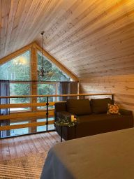 Для размещения гостей предоставляются домики различной вместимости - А-фрейм и коттеджи. Все домики оснащены необходимой техникой: телевизор, холодильник, микроволновка, индукционная плита, чайник, кухонная посуда, фен. Все апартаменты оборудованы ванными комнатами и кухнями. Так же на всей территории есть wi-fi. На территории глэмпинга расположена новая ароматная баня и сибирский чан. Здесь вы получите максимальное расслабление и полное обновление, чистоту разума и тела.
