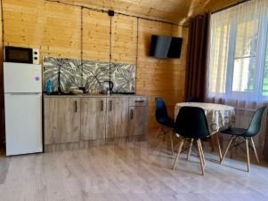 Гостевой дом "Лесной дом" расположен в селе Даусуз, с видом на лес, горы и сад. Расстояние до аэропорта Минеральные Воды составляет 172 километра, до ж/д вокзала в городе Черкесск 79 километров, до села Архыз 40 километров. Для размещения гостям предлагается уютный дом в стиле Barnhouse и коттедж. В коттедже может разместиться компания до 4-х гостей. Для комфортного проживания гостей дом оснащен всем необходимым: кухня-гостиная, обеденная зона, двуспальный диван, холодильник, чайник, микроволновая печь, TV, колонка, санузел, стиральная машина, изолированная спальня с двухспальной кроватью. Просторный двухэтажный Барнхаус может разместить большую компанию до 14-ти гостей. В доме: кухня-гостиная, обеденная зона, двуспальный диван, холодильник, чайник, микроволновая печь, TV, колонка, санузел, изолированная спальня с двуспальной кроватью, на втором этаже 2 изолированные спальни с двуспальными кроватями, двуспальный диван, балкон. На территории для гостей имеется мангальная зона у каждого домика, качели, детская площадка, большая беседка. Гостям предоставляется парковка. Коттедж для размещения до 4 человек. Для комфортного проживания гостей дом оснащен всем необходимым. В доме есть кухня-гостиная: стол, стулья, двуспальный диван, микроволновая печь, холодильник, колонка, вся необходимая посуда, чайник, TV, совмещенный санузел, стиральная машина, изолированная спальня с двухспальной кроватью, комод, TV. На территории: мангальная зона у каждого домика, качели, детская площадка, большая беседка, парковка.