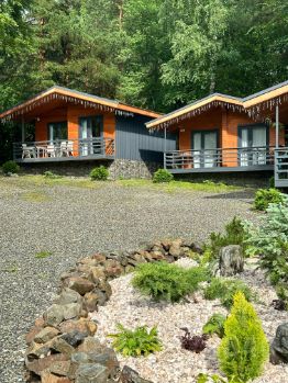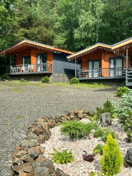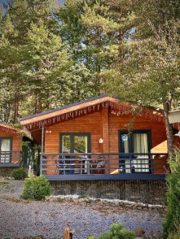 В каждом шале своя меблированная терраса + панорамное остекление.