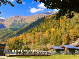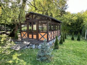 В каждом шале своя меблированная терраса + панорамное остекление.
