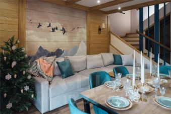 Шале в альпийском стиле с современным интерьером общей площадью 100 кв.м. подарит ощущение спокойной атмосферы и приятного отдыха. Для размещения до 7-ми гостей.