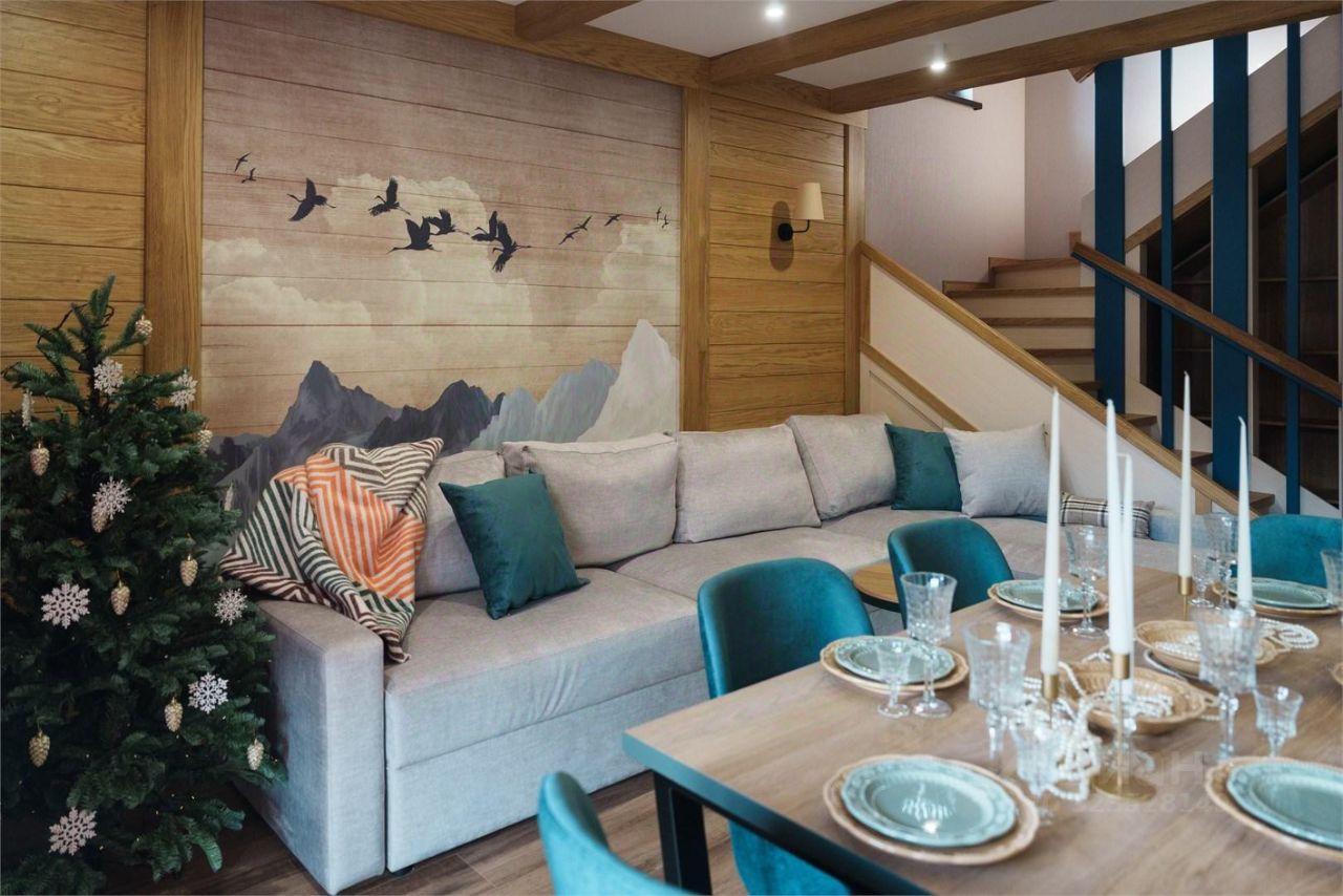 Шале в альпийском стиле с современным интерьером общей площадью 100 кв.м. подарит ощущение спокойной атмосферы и приятного отдыха. Для размещения до 7-ми гостей.