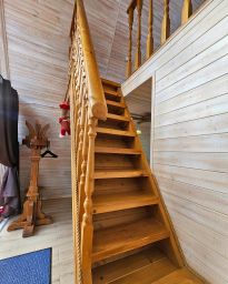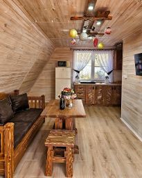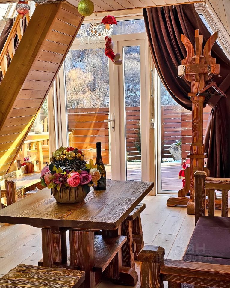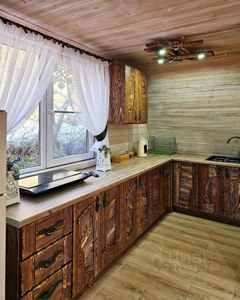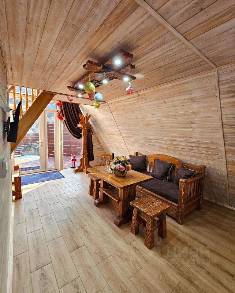 На первом этаже есть раскладной диван, обеденный стол, полноценная кухня с холодильником, СВЧ-печью и варочной панелью. Двор в 180 кв.м. огорожен забором.
