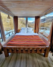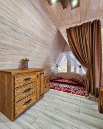 Комфорт и отдых в спальне вам обеспечат кровать ручной работы 160х200 м и натуральное постельное бельё.