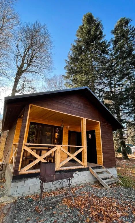 Люксовый коттедж в поселке архыз. 54 кв м2, вмещает до 6 человек, имеет две спальни с большими кроватями, гостиная, кухонная зона с электрической печной для готовки, диван-раскладной, санузел с ванными принадлежностями, терраса со столом и стульями. Так имеется своя комната для сушки горнолыжного обмундирования