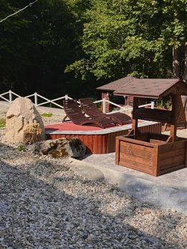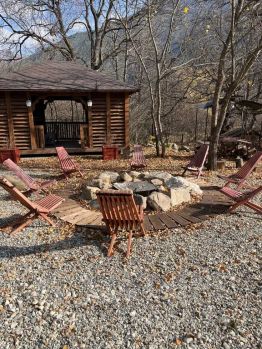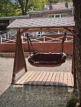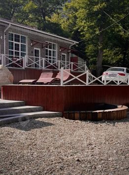 На территории гостевых домов работает сауна с купелью, а чан входит в стоимость брони. Во дворе оборудована уютная лаунж-зона, где можно приятно пообщаться с друзьями или отдохнуть под открытым небом. Для маленьких гостей предусмотрена небольшая детская площадка, а мангальная зона позволит устроить отличный семейный ужин на свежем воздухе.