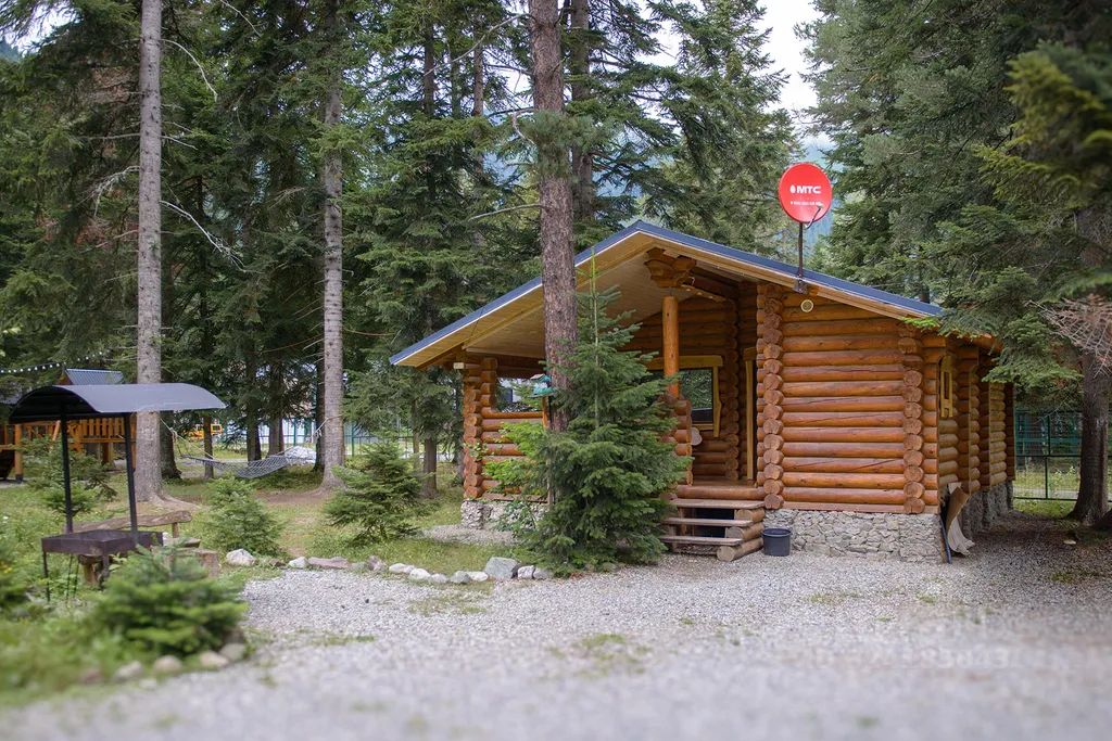 Шале с одной изолированной спальней; Площадь дома 50 кв. м.; Изолированная спальня с двуспальной кроватью; Кухня-гостиная с раскладным диваном; Кухонный гарнитур со всей необходимой посудой и техникой; Варочная поверхность; Холодильник; Телевизор; Электрочайник; СВЧ печь; Набор посуды; Санузел с душем; По два полотенца на каждого гостя; Одноразовые тапочки; Шампунь/гель для душа, зубной набор, жидкое мыло.