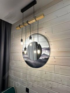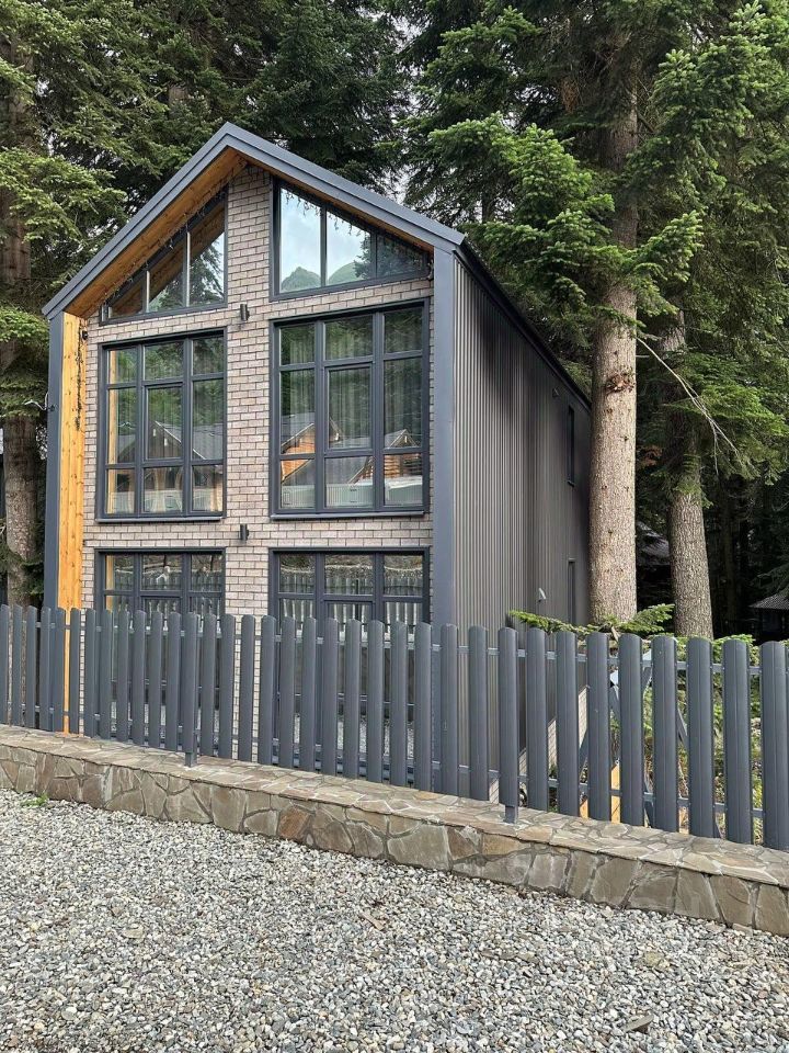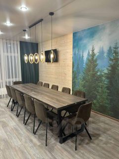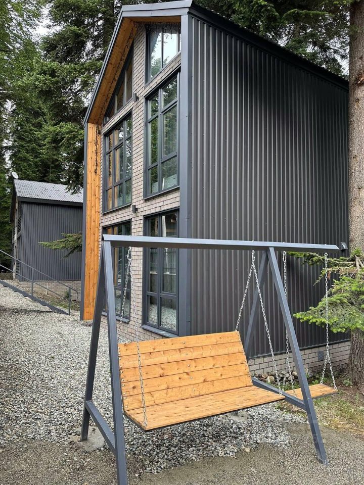 Большой двухэтажный коттедж на 14 человек. На первом этаже: кухня-гостинная с двумя двуспальными диванами, открытая терраса с обеденным столом, санузел. На втором этаже: 3 спальни (2+4+4), 2 санузла, детская кроватка. Рядом с коттеджем своя мангальная зона. В каждой комнате Smart-TV и тёплый пол.