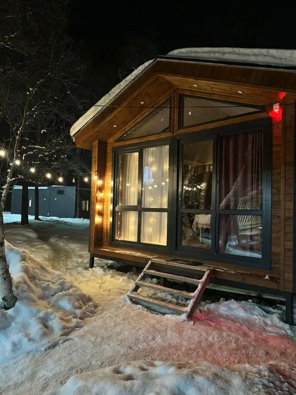 В домике уютная собственная кухня, оснащенная микроволновой печью, индукционной плитой, холодильником с морозильной камерой, эл. Чайником и всей необходимой посудой.