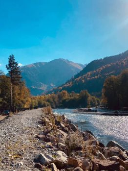 Домик с мангалом у реки псыш в горах архыза (софийская поляна).