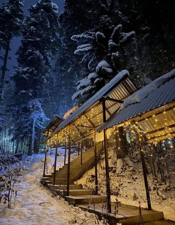 На территории находятся две русские бани с оборудованной купелью из горной проточной ледяной речки!