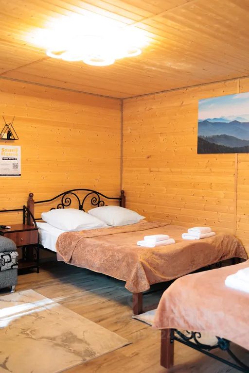 Погрузитесь в сказочную атмосферу уюта и гармонии в самом сердце Архыза! Представьте себе: живописный лес, вековые сосны, горные вершины, утопающие в облаках, и посреди этого великолепия ваш личный эко-домик, где каждая деталь продумана для вашего комфорта и незабываемого отдыха. Наш уютный однокомнатный деревянный эко-домик площадью 27 кв.м, расположенный на территории базы отдыха "Солнечный дом", это идеальное место для семьи или компании друзей до 4 человек. В вашем распоряжении: Просторная спальная зона с удобной двухспальной кроватью и односпальной кроватью для полноценного сна. Дополнительное спальное место комфортабельный диван-кровать. Полностью оборудованная кухонная зона, где вы сможете приготовить любимые блюда. Все необходимое для комфортного отдыха: стол, стулья, прикроватная тумба. Современная техника сделает ваш отдых еще более приятным: индукционная варочная панель, плазменный телевизор с кабельными каналами, холодильник, микроволновая печь, чайник и полный набор посуды. Насладитесь безупречным комфортом: высокоскоростной Wi-Fi позволит оставаться на связи, а с собственной террасы с захватывающим видом на горы и сосновый лес вы сможете любоваться потрясающими пейзажами. В вашем личном санузле: душевая кабина, туалет, фен и зеркало. Мы позаботились о вашей гигиене и предоставили набор полотенец, тапочки и косметические принадлежности (гель для душа, шампунь, мыло, зубной набор). "Солнечный дом" это не просто база отдыха, это место, где вы сможете отдохнуть душой и телом, насладиться тишиной, чистым горным воздухом и комфортом в любое время года! А на территории вас ждет еще больше развлечений и удобств: Беседки, мангалы и кострище для теплых душевных посиделок с друзьями и семьей. Детская площадка с качелями, горкой и батутом чтобы вашим детям было весело и интересно. Бесплатный Wi-Fi и парковка для вашего удобства. И это еще не все! Воспользуйтесь нашими платными услугами, чтобы сделать ваш отдых еще более незабываемым: Расслабьтесь в чане с видом на горы и ощутите полное единение с природой. Побалуйте себя посещением бани (в процессе установки) и зарядитесь энергией на долгое время. Не упустите возможность окунуться в атмосферу сказки и комфорта в самом сердце Архыза! Забронируйте свой идеальный эко-домик прямо сейчас, и ваш отдых станет по-настоящему незабываемым!
