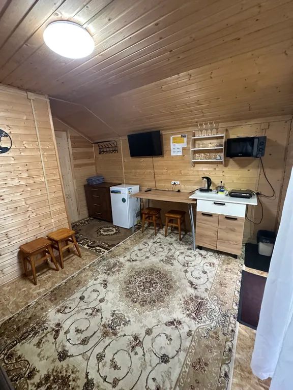 Наши домики довольно вместительны, отлично подходят для семьи с детьми или небольшой компании из 4 человек. В комнатах уютно, тепло, имеется вся бытовая техника.