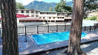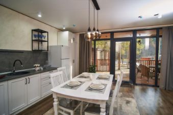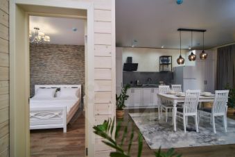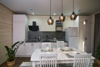 Экокомплекс "АльбАгир" расположен в оживленной части курорта Архыз, на берегу реки Большой Зеленчук и в окружении соснового бора. Расстояние до аэропорта Минеральные Воды составляет 210 км. Для размещения предлагаются домики из натурального дерева типа A-frame и бaрнxаус. Домики оборудованы звукоизоляцией и оснащены отоплением с теплым полом. Внутри есть все необходимое для комфортного отдыха, в том числе полностью оборудованная кухня с современной бытовой техникой и красивой посудой для самостоятельного приготовления пищи. Коттеджи оснащены продуманной системой освещения, создающей атмосферу уюта. Гостям предлагаются халаты и тапочки, а также туалетно-косметические принадлежности. Современные дома созданы для тех, кто ценит комфорт и простоту. Внутри просторные комнаты, высокие потолки и большие окна, обеспечивающие естественное освещение. В отеле есть общая кухня, где также можно приготовить еду и общий открытый бассейн с подогревом. В распоряжении гостей мангальная зона, скоростной Wi-Fi на всей территории, круглосуточная стойка регистрации. Для гостей на автомобиле предусмотрена парковка. Барнхаус площадью 110 кв.м с видом на лес и реку подходит для размещения 5 человек. В доме имеются 2 спальни с одной двуспальной кроватью в каждой и гостиная с 1 двуспальным диваном. Балкон и терраса меблированы столом и стульями. Кухня оборудована электрической плитой, микроволновой печью, холодильником, чайником, обеденным столом, стульями, посудой, столовыми приборами. Имеется телевизор, вентилятор, шкаф, вешалка, рабочий, журнальный столик, комод, стулья, фен, сейф, антимоскитная сетка, плотные шторы. Также имеются две индивидуальные ванные комнаты (душ, раковина, туалет, биде). Предоставляются постельное бельё, полотенца, тапочки, халат, мыло, шампунь, гель для душа, мыло, зубной набор. Бесплатный WI-Fi на всей территории.