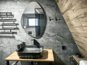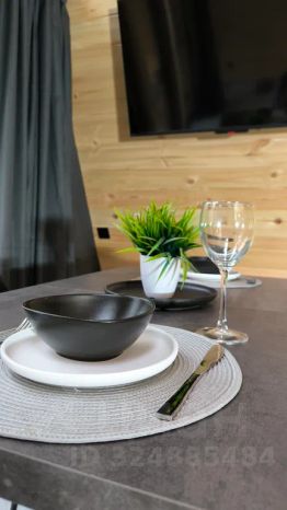 - На первом этаже — просторная гостиная с диваном-кроватью (160190 см), телевизором и обеденной зоной.
